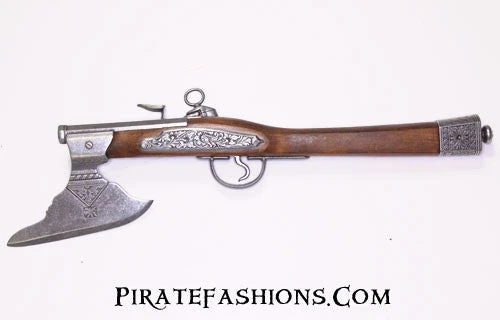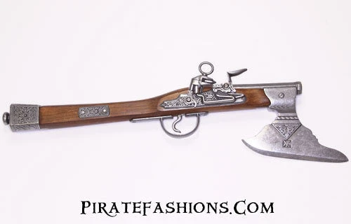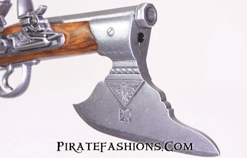 This be a copy of an actual 17th century miquelet flintlock pistol n’ axe combination weapon, which bepopular since ye had only one shot.