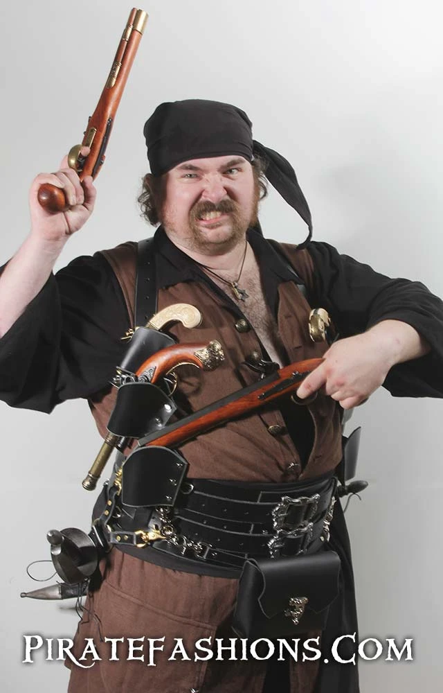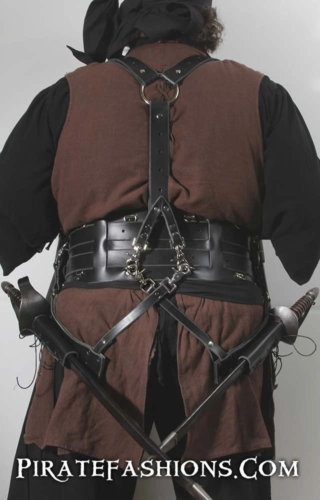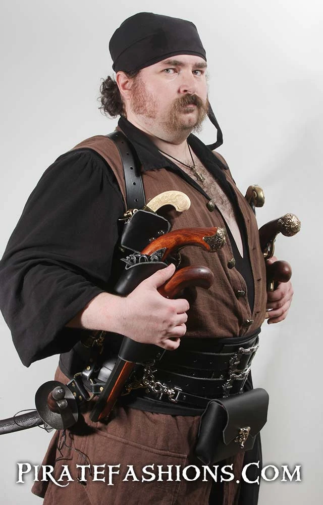 Here be the best weapon set up to carry 8 weapons just like Black Beard. After 4 different versions developed over a decade, we finally got a system that is off the rack, fits different sized individuals, easy to put on and take off, comfortable to wear, can be configured to carry different sizes and types of weapons. Includes: