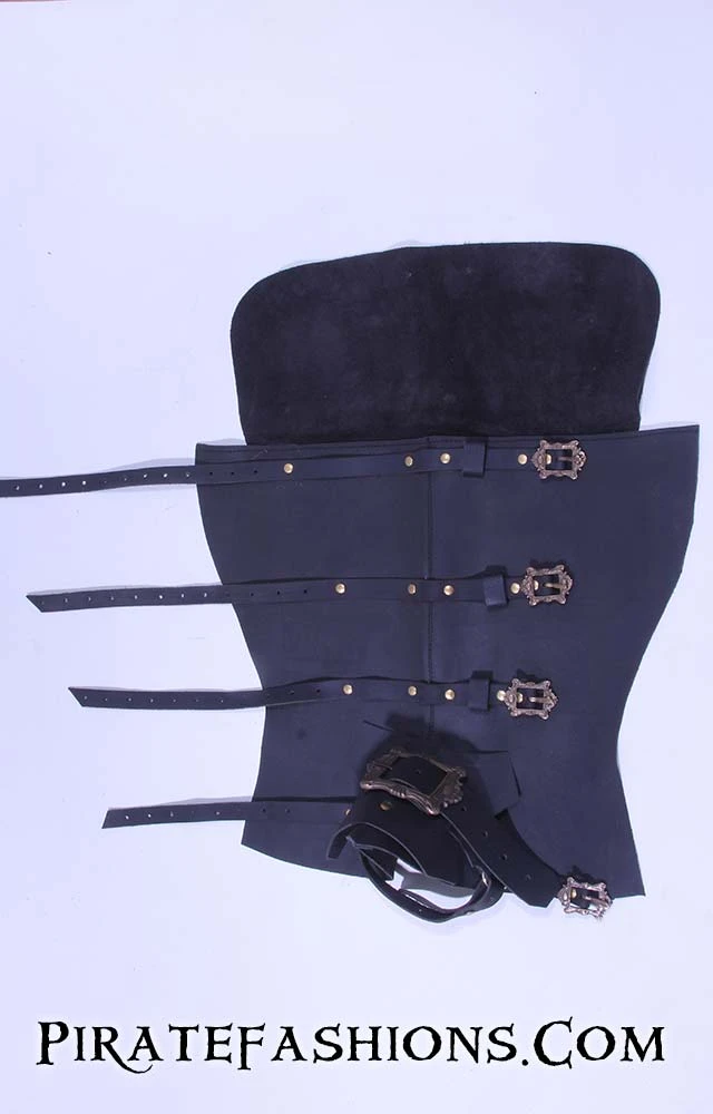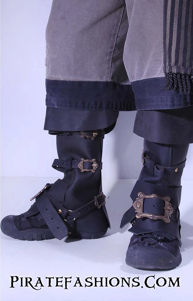 Instantly transform yar regular shoes or boots into a pirate boot! This be a good quality topper made of leather with lots of strap to secure it firmly onto yar shoe. No saggy boot tops be found with these!