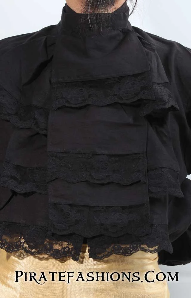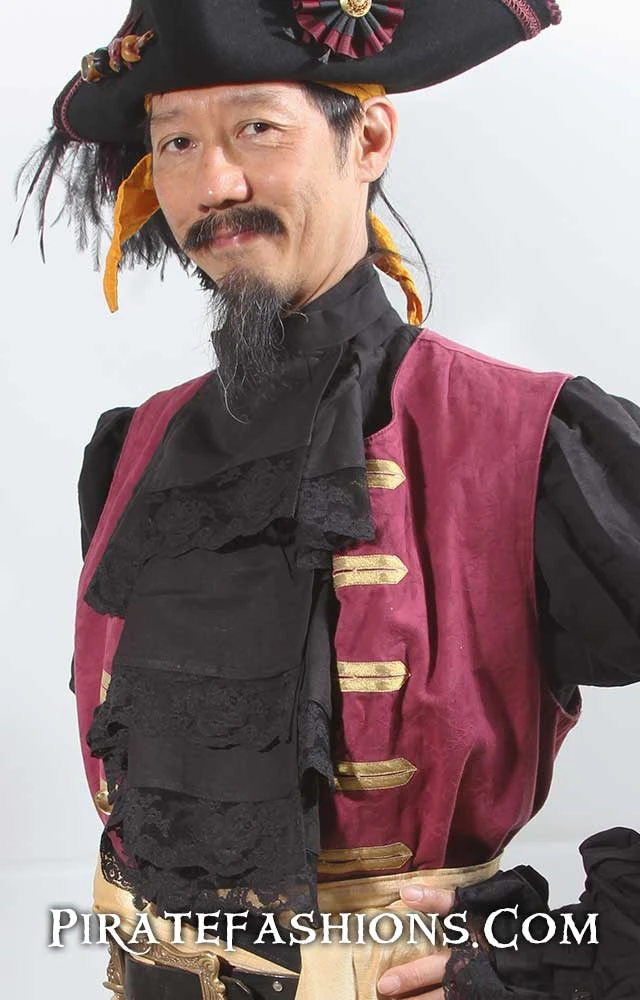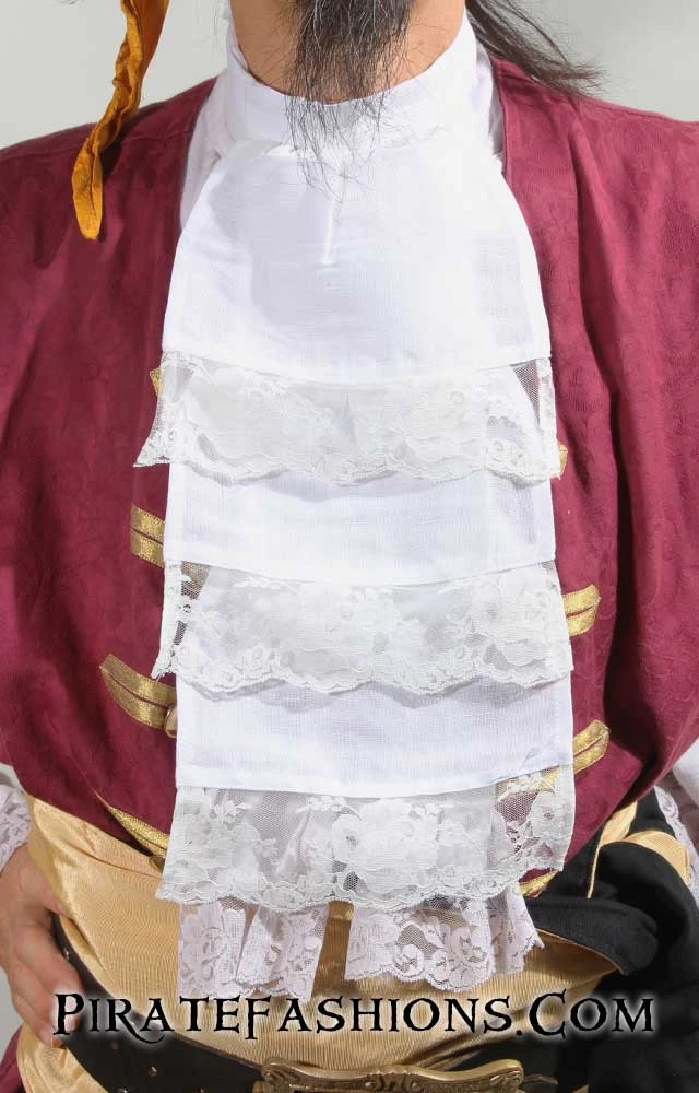 Grand accessory fer fancying up any shirt or if ye lose yar original jabot to the court pirate shirt. Jabot be lacy fabric attached to a neckband, popular in the 17th & 18th century for upper class men’s fashions. A must have for any aristocrat or musketeer.