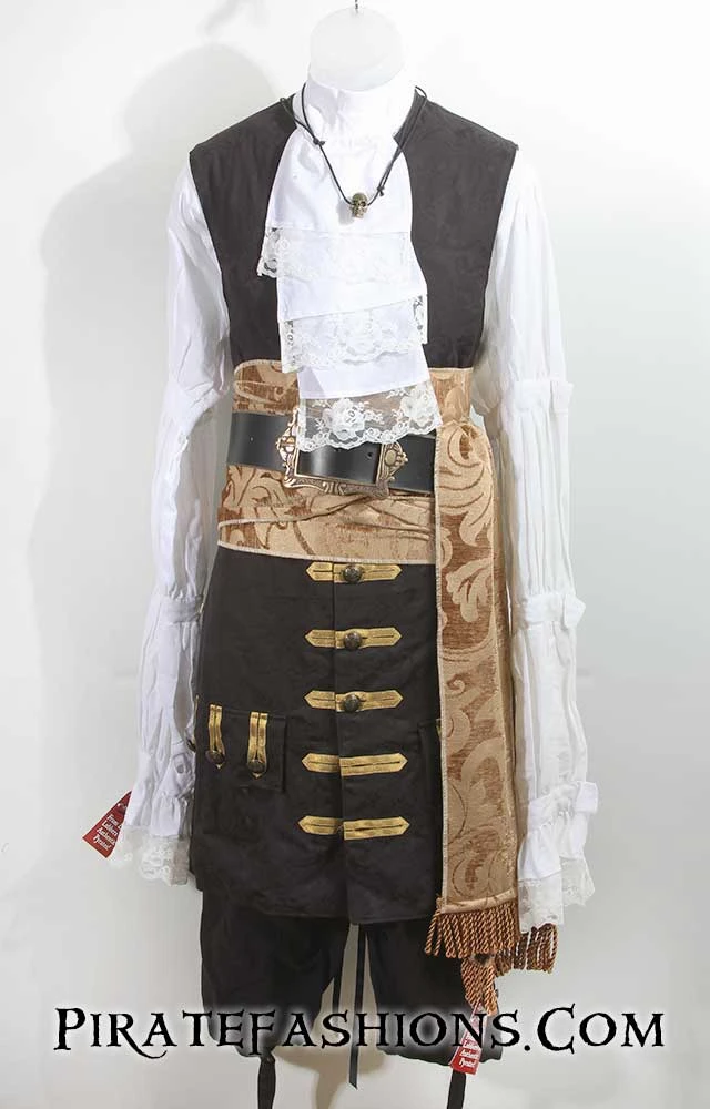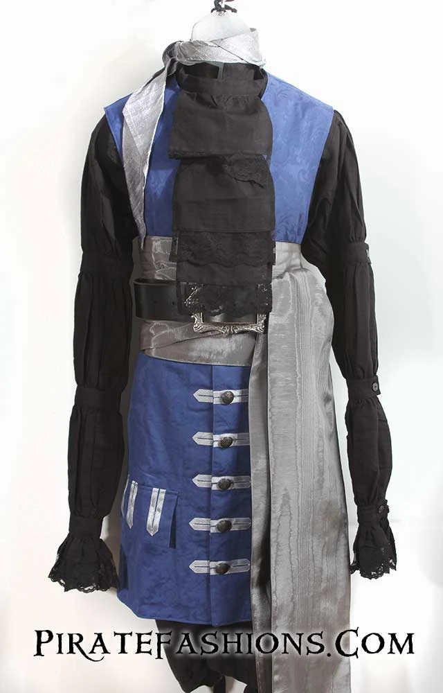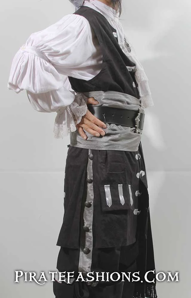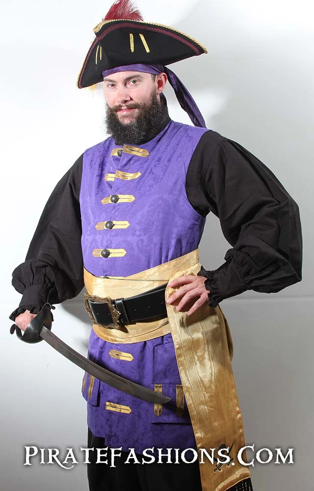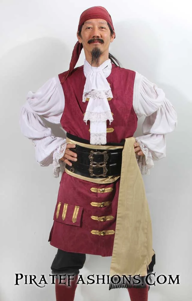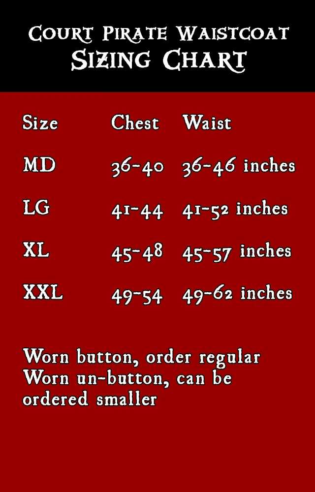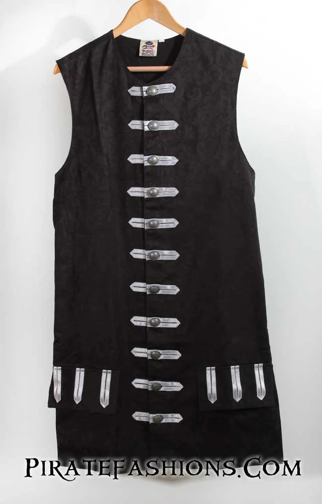 When ye be needing to dress up to raid the king’s court or show up to a pirate bash, this be the finest quality waistcoat we carry.  This be the similar to arrr popular Seawolf waistcoat, but longer n’ fancier. With an elegant baroque/rococo flair, this here waistcoat be perfect fer attending the Carnival in Venice or a masquerade ball. Â