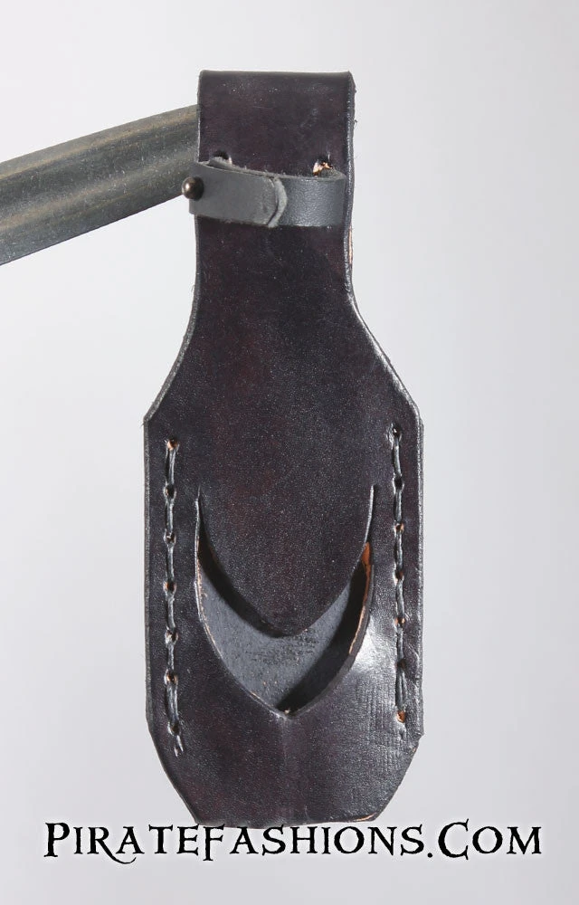 This be a custom holster to carry the French Dagger Pistol.  Combination weapons be fairly popular in the age of pirates, as ye be only getting one shot. This holster is made right here in the Pirate Fashions leather shop!