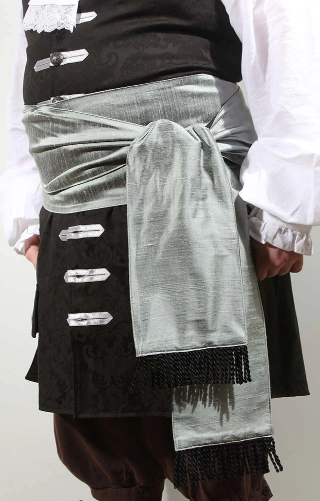 Here be a very limited edition sash. Double sided with black cotton on one side and rich dupioni silk on the other. This sash be a nice one taken off a Spanish galleon we just plundered.