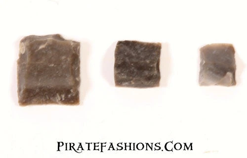 Quality Georgetown or central Texas chert flints. Flints are good for only 20 to 40 uses depending on the weapon and care given to the flints. Remember that you do have 4 different sides: top front, bottom front, top back, bottom back. You can also nap yar flints with a flint napping hammer to get more use out of it.