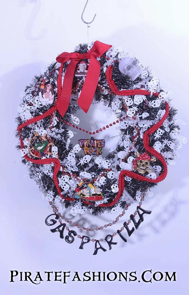 Instead of Christmas Wreath, the pirate town of Tampa Bay decorated their doors n’ homes with Gasparilla Wreath to welcome scurvy wenches n’ seadog in.