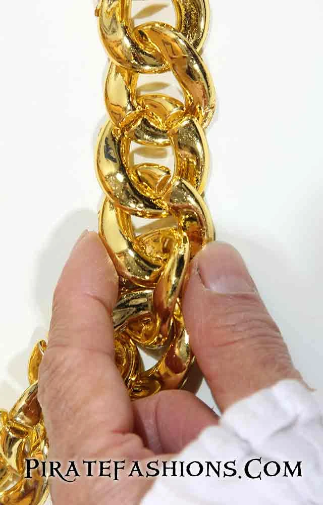 Giant 42″ chain, 1.25 inch diameter.  Links can detach to change the length of the chain. Wealthy lords of yore wore chains to show off their wealth. Â