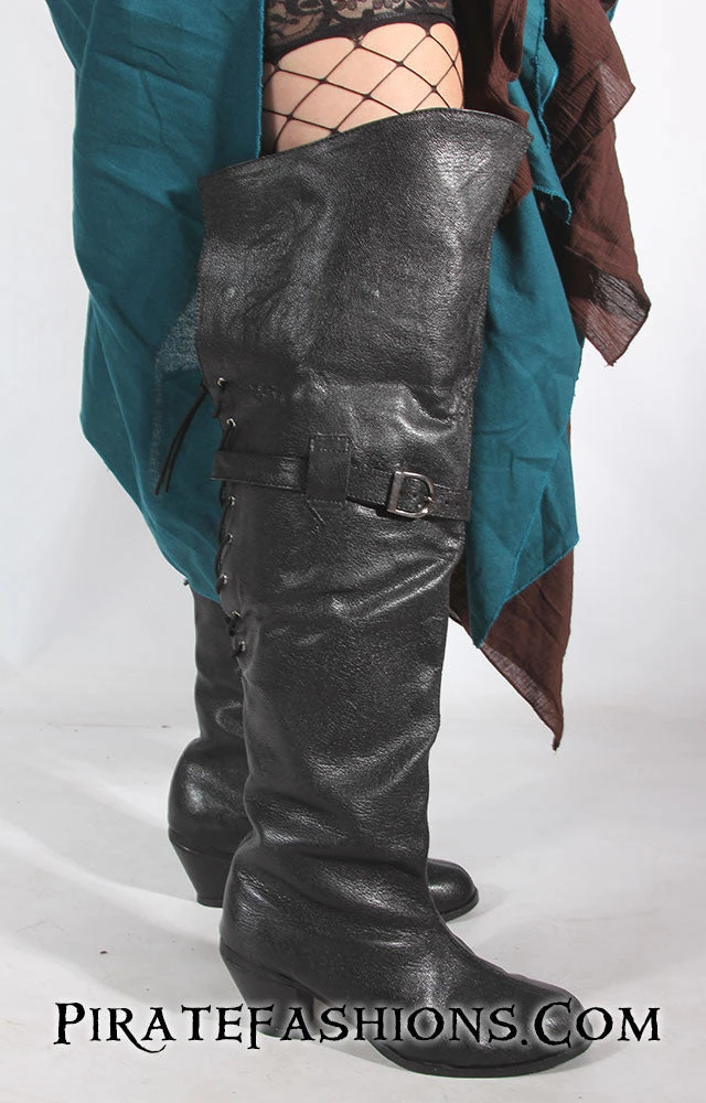 Here be a beatiful lookin’ women’s boot made o’ real leather. This be the very first boot made under Pirate Fashion’s name. We’ve made major improvements not found on other women’s boots on the market. These boot where designed to walk a parade comfortably.