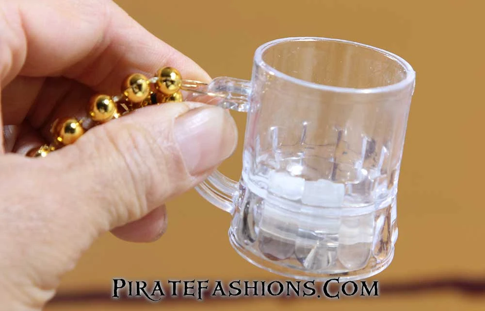 A tiny beer mug on 33″ differently colored 7mm bead. Drinkers love this one, arrrrgh! Turn on switch at the bottom to make the mug light up in red, white n’ blue in 3 different flashing patterns.