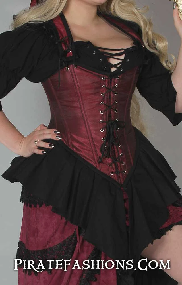 This here be our Milady Bodice; a very unique design only available at Pirate Fashions. This bodice is high waisted, good for women with a short torso.