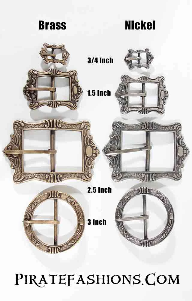 While most people use the simple Tandy Leather buckle, which be a modern buckle. Researching period buckles of the 18th century, we designed n’ created a line of buckles that would transform modern belts into something historical. These be well made n’ thick, and will stand up to years of use.  5 different sizes from 3/4 to 4 inch wide.