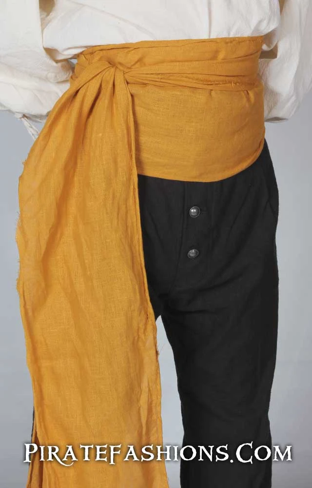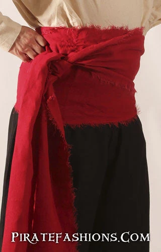 Here be a fine linen pirate sash, left rough at the edges fer that worn pirate look. This be one of arrrrr most popular n’ affordable sashes!