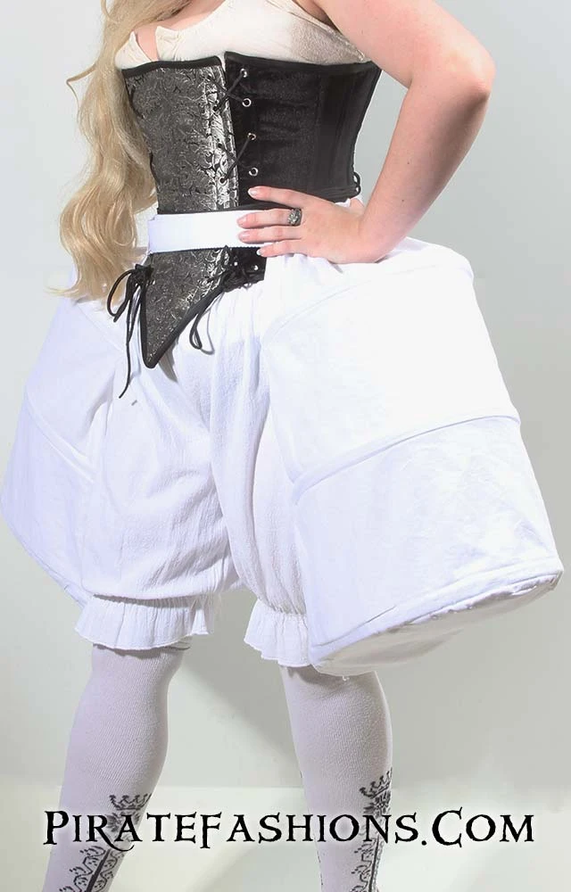 Panniers or side hoops are women’s undergarments worn with 18th century gowns to add shape to the hips only, opposed to the farthingale or hoop that extended out in all directions. Designed especially fer our 7 Seas Ladies Gown, to be used in the English Robe or Robe a la English.