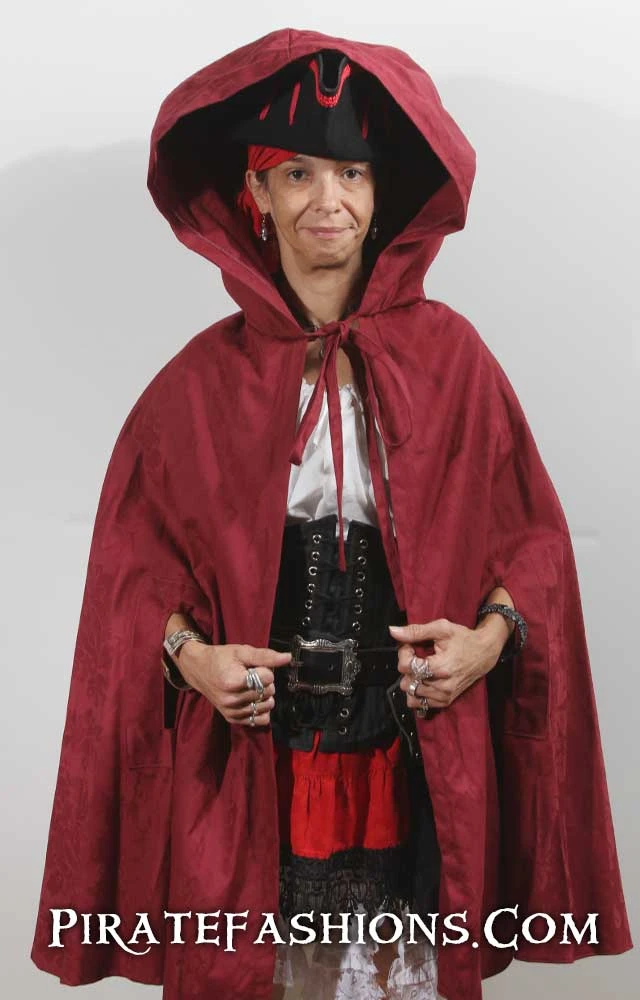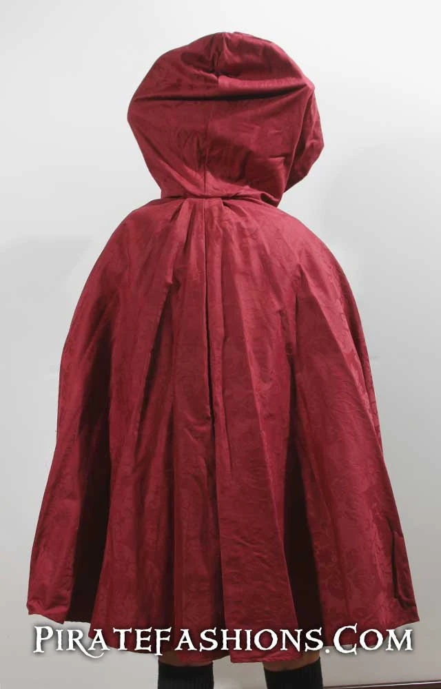 This here cape in red with hood be perfect accessory when you want to stand out from the crowd.  A cape be any sleeveless outer garment but it usually be a garment that covers only the back half of the wearer, fastening around the neck. Shorter than a cloak, capes be very popular in the 16th and 17th centuries. In the 18th century overcoats were used instead of capes.Â
