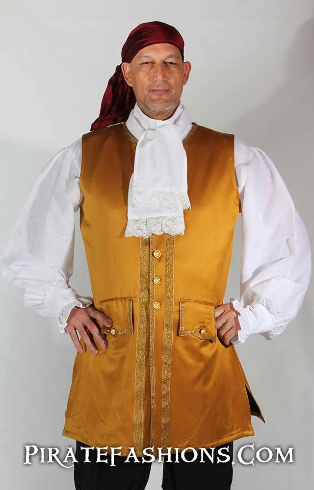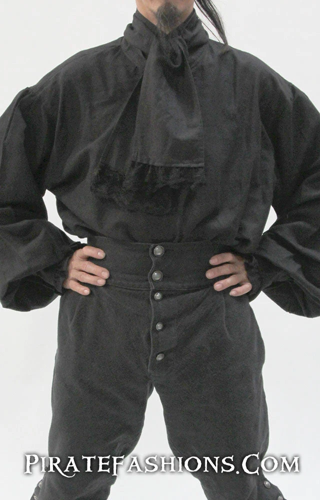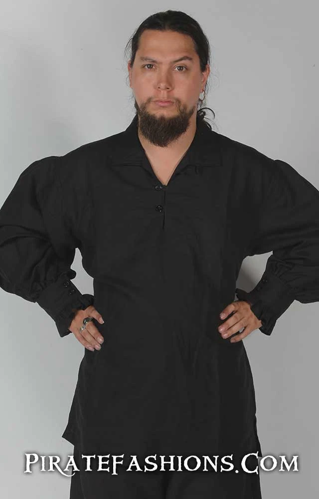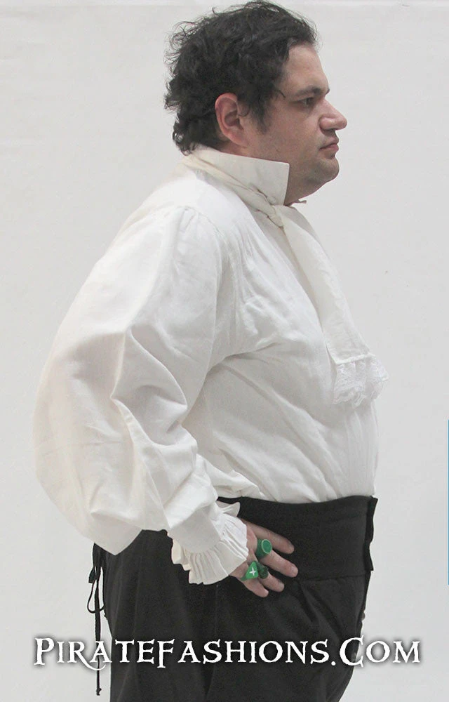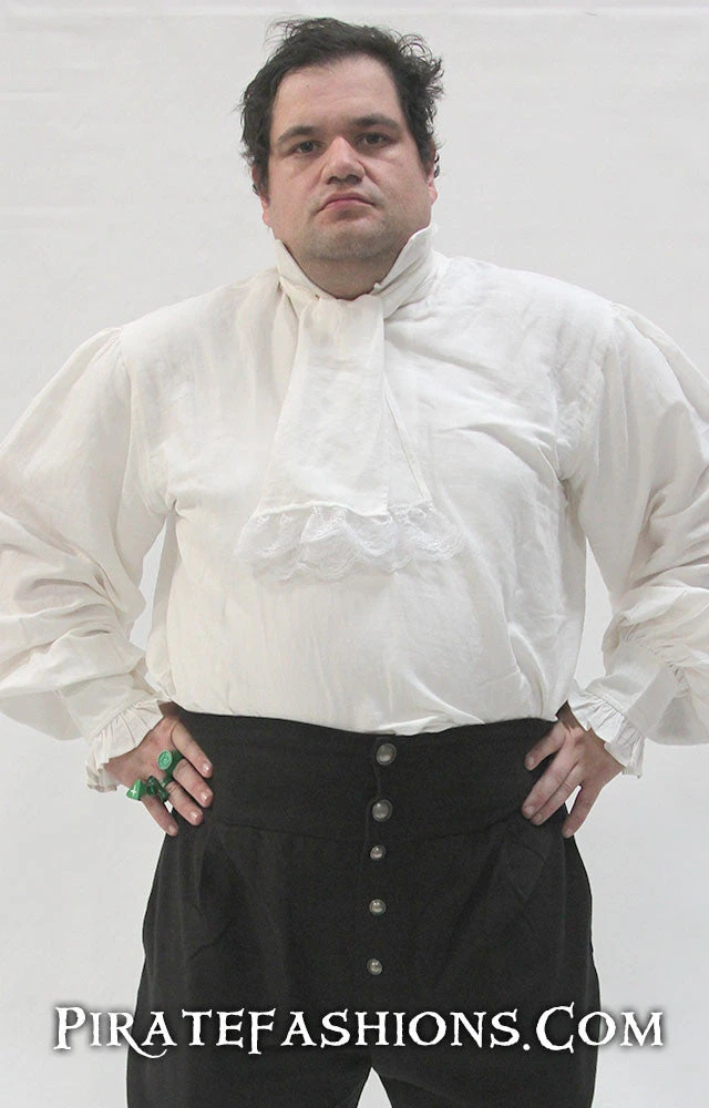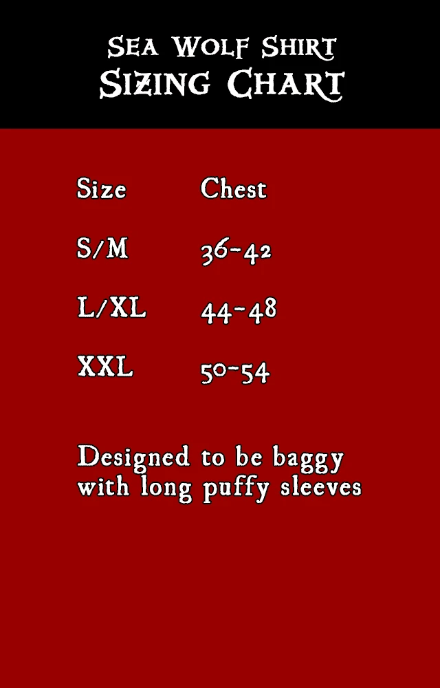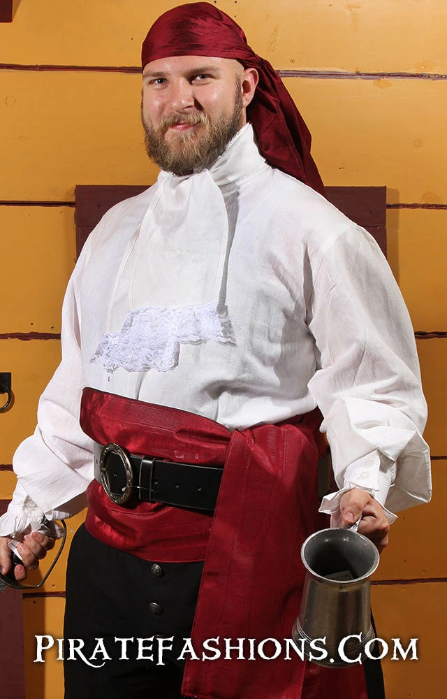 Here be an authentic pirate shirt fer the golden age of piracy. It be versatile, in that ye can wear it with the included cravat fer the fancy look or without it fer a rough look. Part of the Sea Wolf outfit.