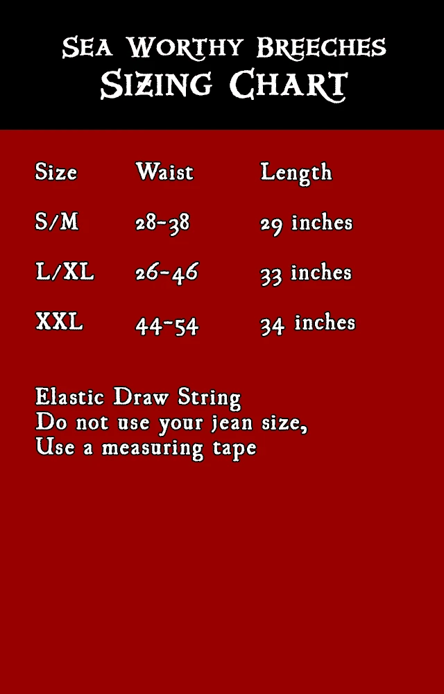 Here be the affordable version of the Sailor Slops. Great as starter pants. Â This breech be discontinued n’ only a few remain.