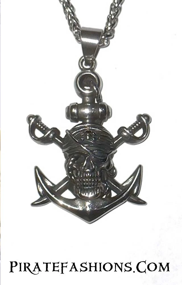 For those maties who want a great looking skull on a anchor to hang around their neck, this one be a well sculpted piece, arrgh!