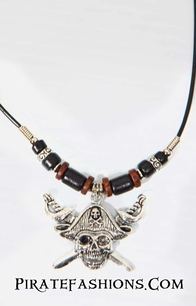 A skull n cross bone over a large sea anchor, strung with a nice collection of beads.