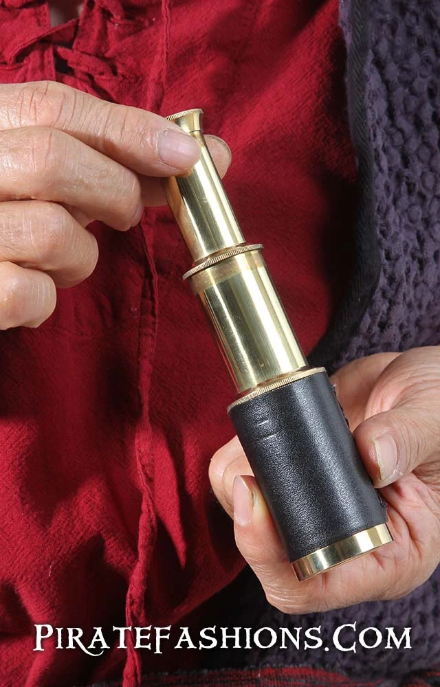 This be a very small n’ affordable spyglass. Also know as telescope in modern times. It be functional 3 sleeve spyglass is constructed of brass. The magnification is very weak, maybe a 2X.